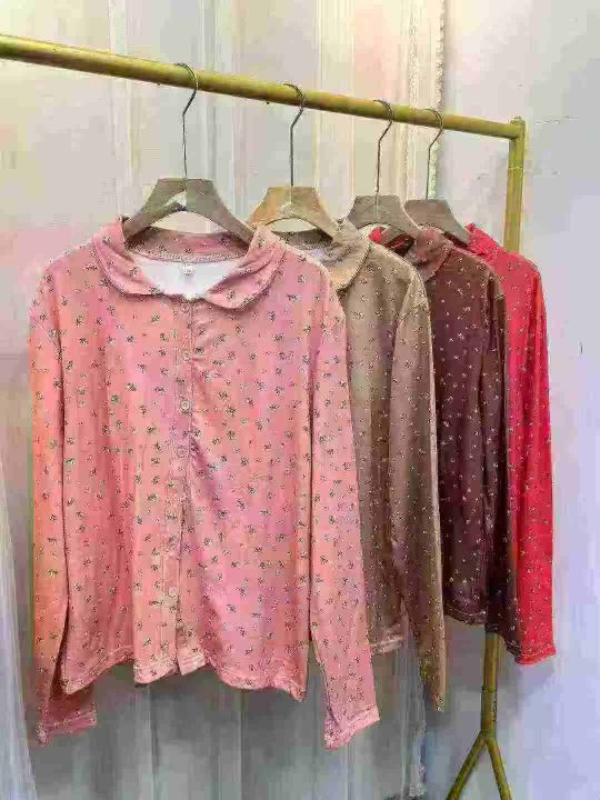 时尚早春季洋气百搭翻领小碎花长袖女士上衣T恤外穿衬衫,数量3600件,码数s...