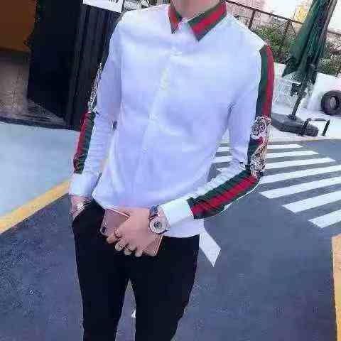 全清价6.8元拼色长袖男潮牌撞色印花衬衣精神小伙韩版潮流秋季气质衬衫,独...