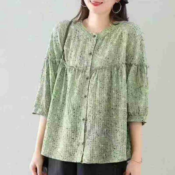 4.9清仓处理,不分货,扎染印花春秋短袖衬衣设计洋气宽松百搭高级复古上衣...