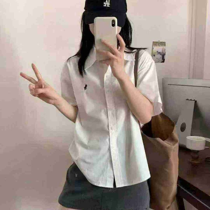 新款春夏季短袖衬衫百搭修身衬衣女正装翻领纯色韩版衬衫,独立包装,S -3 ...