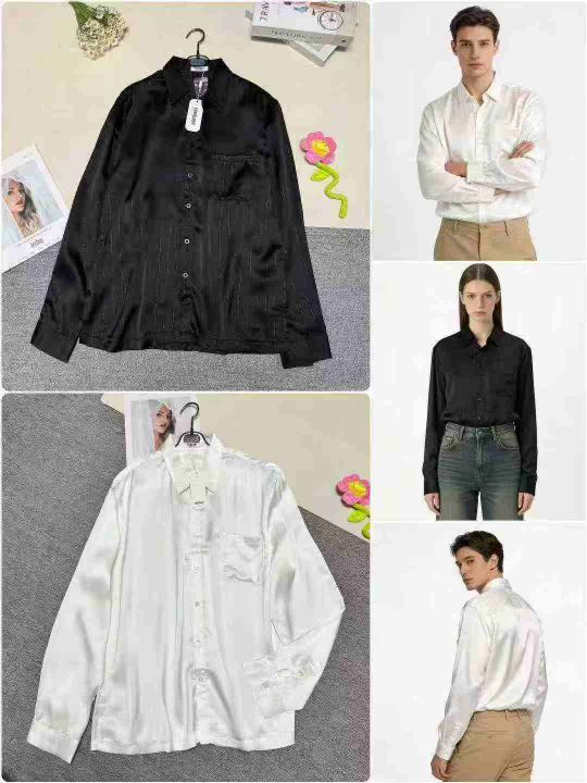 外贸原单男女条纹仿真丝缎面长袖职业休闲衬衣,大版型,特高货,可抽真空拉...