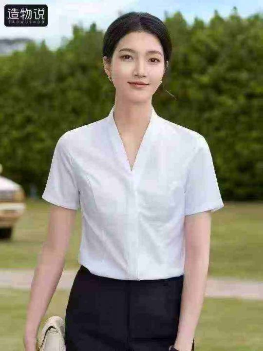 夏季款职业装雪纺衬衫女时尚洋气气质韩版垂感短袖衬衣,独立包装,S一3 xL...