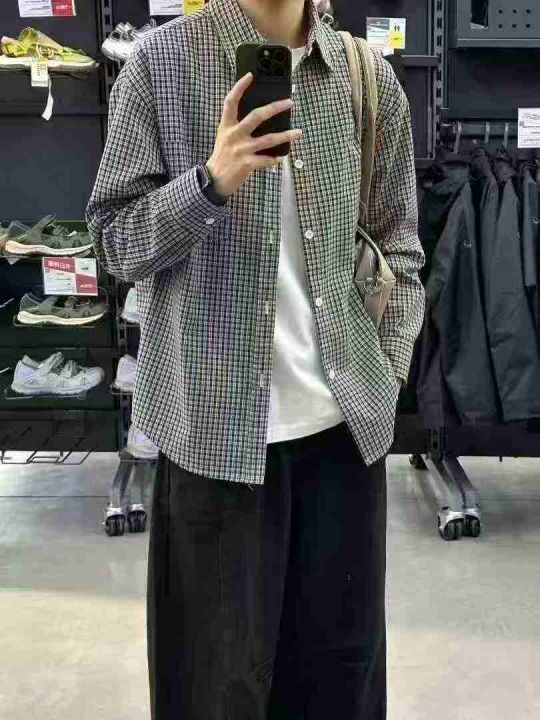 格子衬衫男长袖春秋季2026新款高级感修身痞帅休闲大领打底衬衣,整款3色,M...