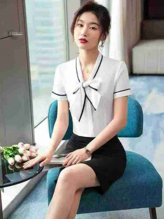 夏季款职业装雪纺衬衫女时尚洋气气质韩版垂感短袖衬衣,独立包装,S一3 xL...