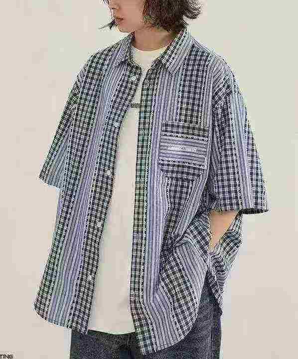夏季新款宽松韩版百搭设计感小众清新格子衬衫,独立包装带吊牌,码数S-XL码...