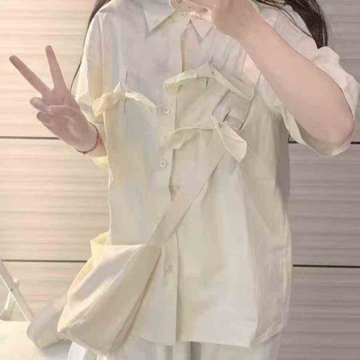 个性设计感短袖衬衫108件7.8宽松版,立体蝴蝶结,码数2-3码(ML),独立包...