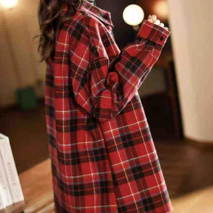 美式复古格子女衬衫宽松外套长袖上衣衬衣港风薄款格子衬衫.两个色S一2XL码6...