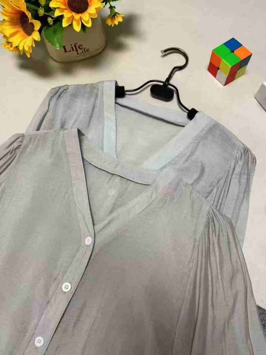 灯笼袖衬衫女高级感轻奢V领独特绝美雪纺小衫上衣,整款两色,品质好,有独...
