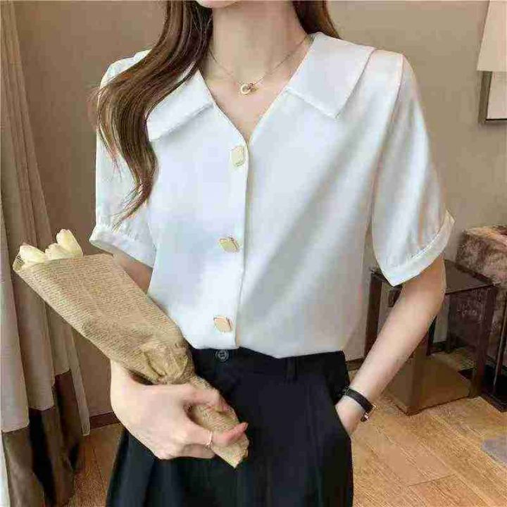 设计新款衬衫小众时尚百搭短袖气质夏季法式衬衣.图片款图片色.独立包装。S...