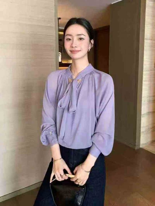 ☕️气质千金风紫色衬衫显白上衣女设计感雪纺衬衣200件全清10元,码数S到XL...