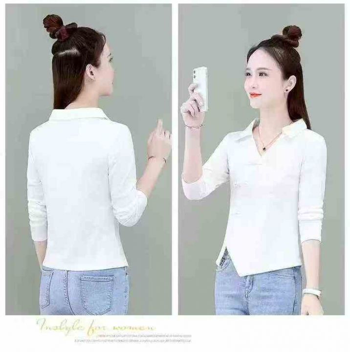 全清5.9棉春秋季2025新款polo衬衫长袖T恤女不规则短款修身上衣打底衫,115...