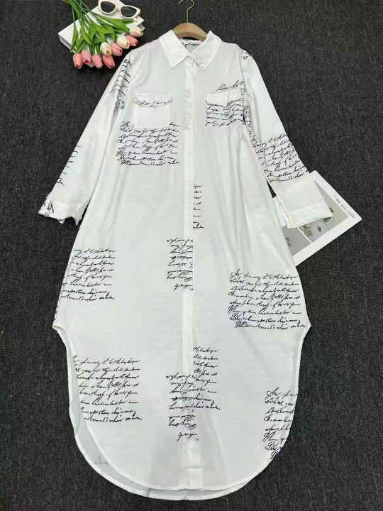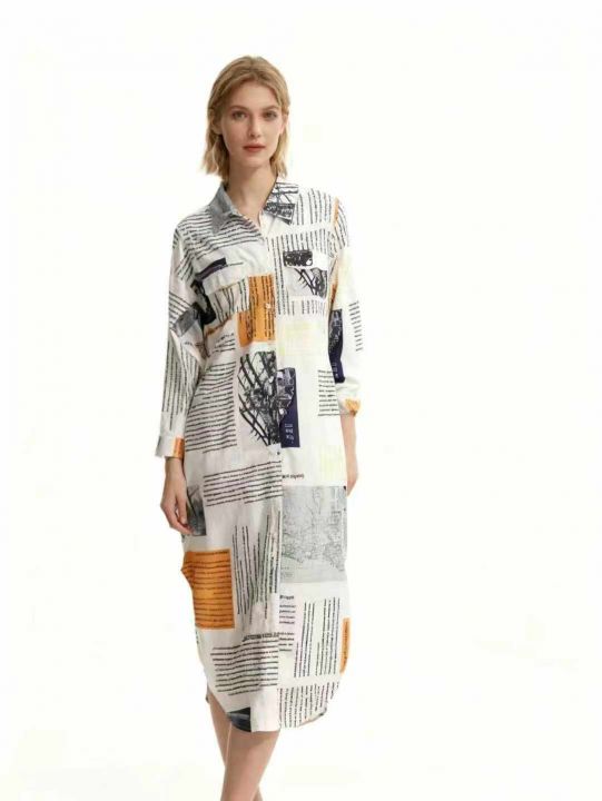 春季新款时尚气质速卖欧美印花纽扣衬衫长袖气质连衣裙,独立拉链包装,S-2X...