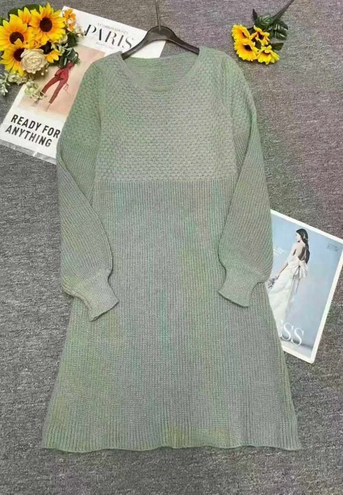 秋冬新欧美风宽松纯色粗针灯笼袖高腰A字圆领毛衣连衣裙,独立包装,码数S--...