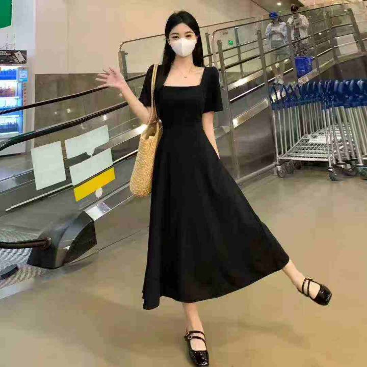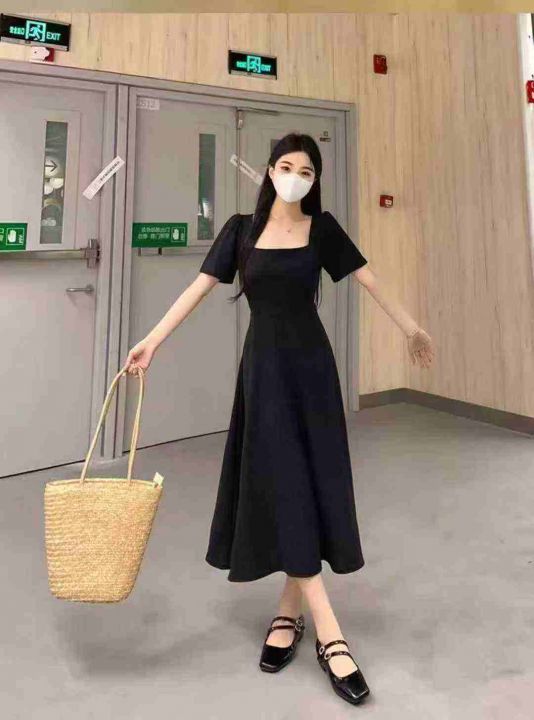 新款法式收腰气质方领高级感赫本风长裙子,单款单色,品质好,有独立包装,...