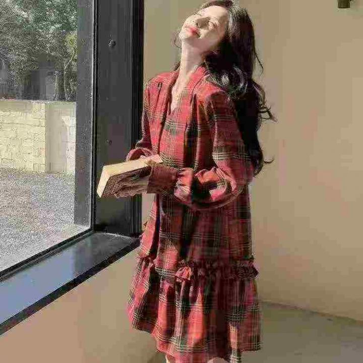 复古格子连衣裙121件8.5,翻领荷叶边,褶皱拼接,码标:160/84A(90-120斤...