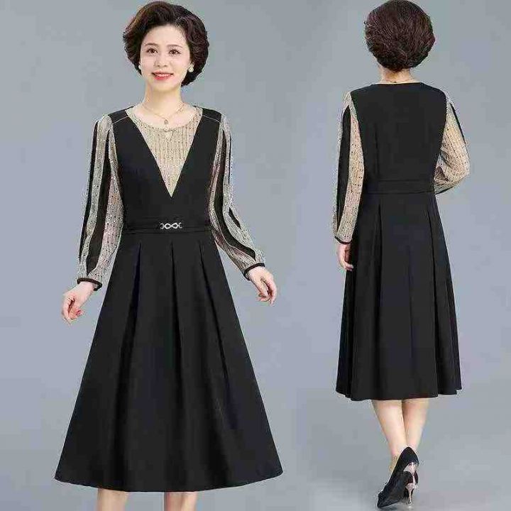 妈妈装秋季长袖连衣裙薄款中老年女雪纺洋气上衣气质阔太太装裙子,数量175...