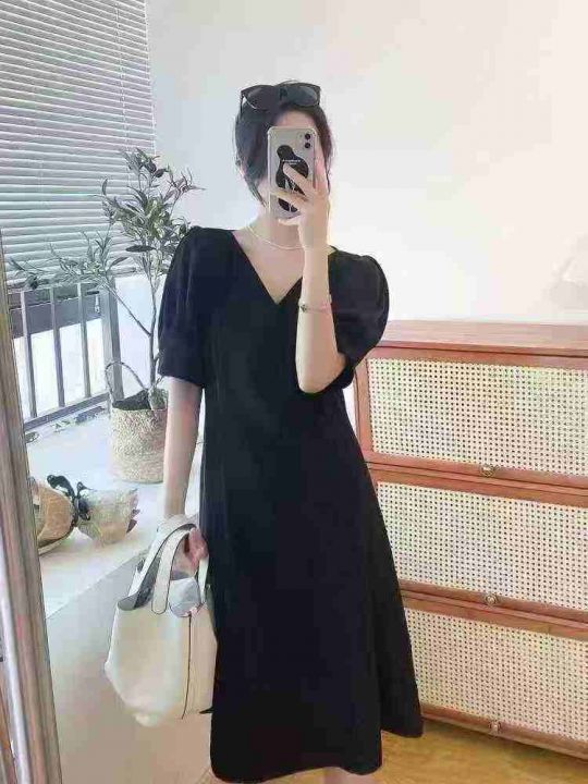 150件左右黑色气质赫本风V领茶歇法式高级感小黑裙连衣裙,雪纺面料,尺码S-...