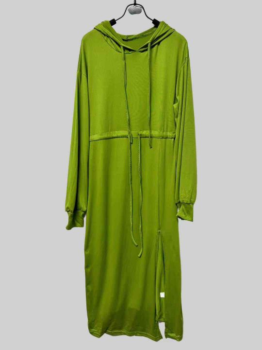 7.8清欧美时尚通勤连帽系带长袖开叉连衣裙,整款三色,数量98件,码数S-2XL...