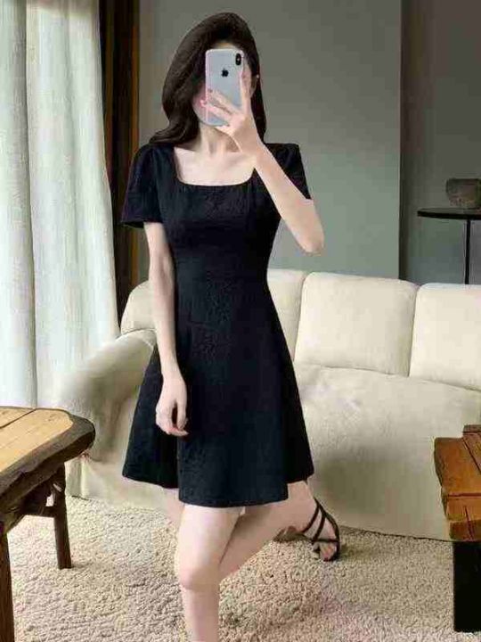 全清14.8,2025新款法式气质方领黑色连衣裙子女装夏季显瘦小个子...