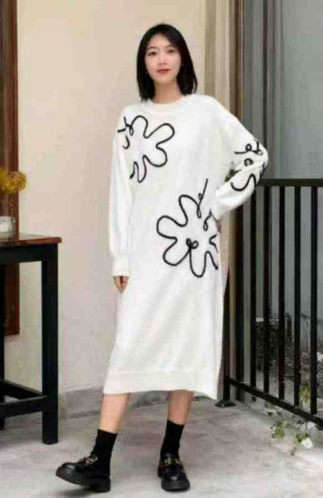秋冬新款宽松慵懒风刺绣加厚中长款毛衣连衣裙,独立包装,均码面料软糯厚实...