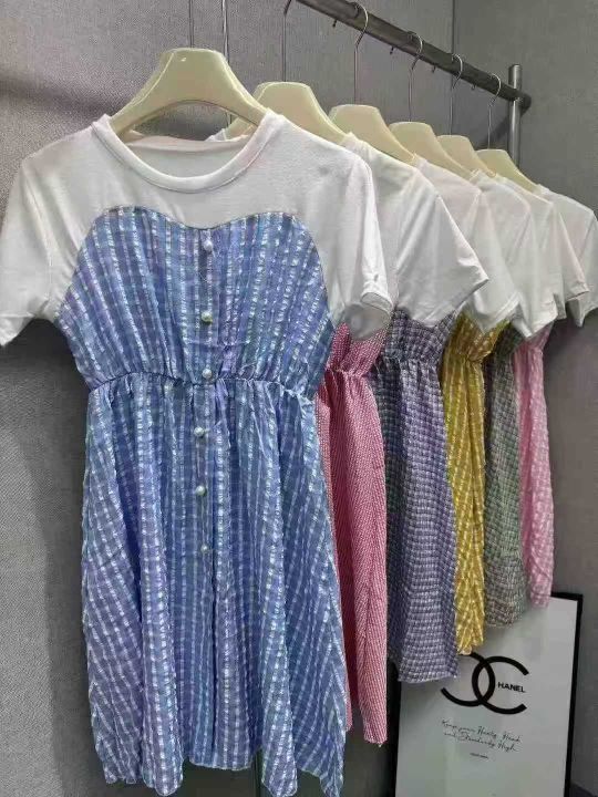 16清1050条,学院风假两件拼接格子连衣裙女夏2025新款宽松休闲显瘦少女生裙...