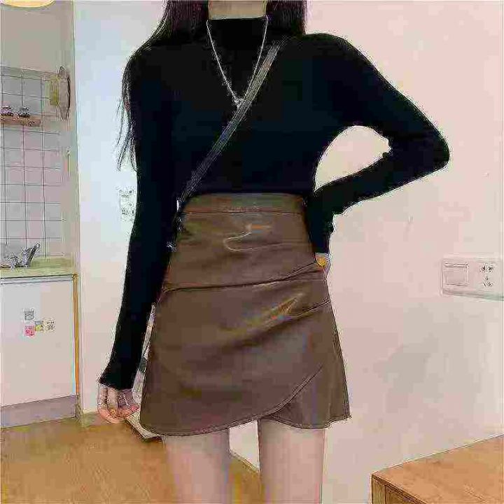 春夏季新款网红复古高腰大码胖mm设计感褶皱a字包臀皮裙,有内衬,码数S- 5X...