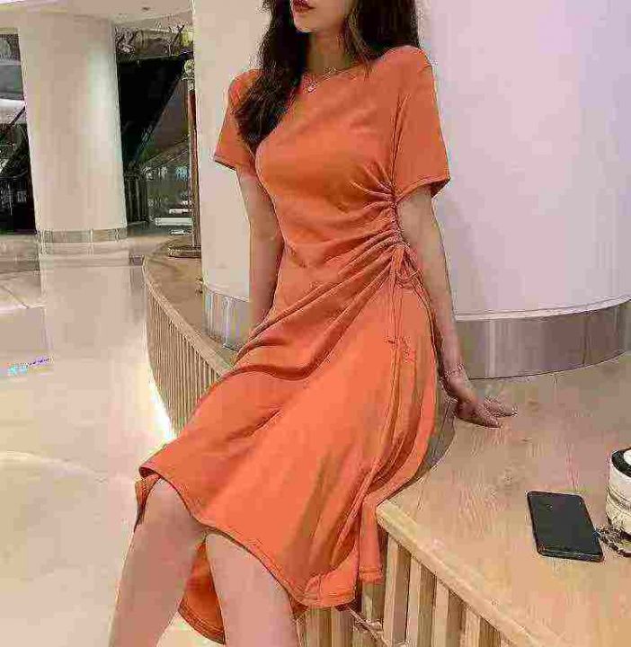 全清6.8元天猫在售款300件左右高品质夏季纯棉中长款靓妹抽绳收腰短袖T恤连...