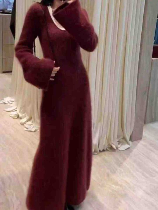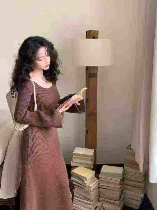 9.8元清针织大长裙,长度到脚踝位置,数量364件,单款咖啡色,网络图供参考...