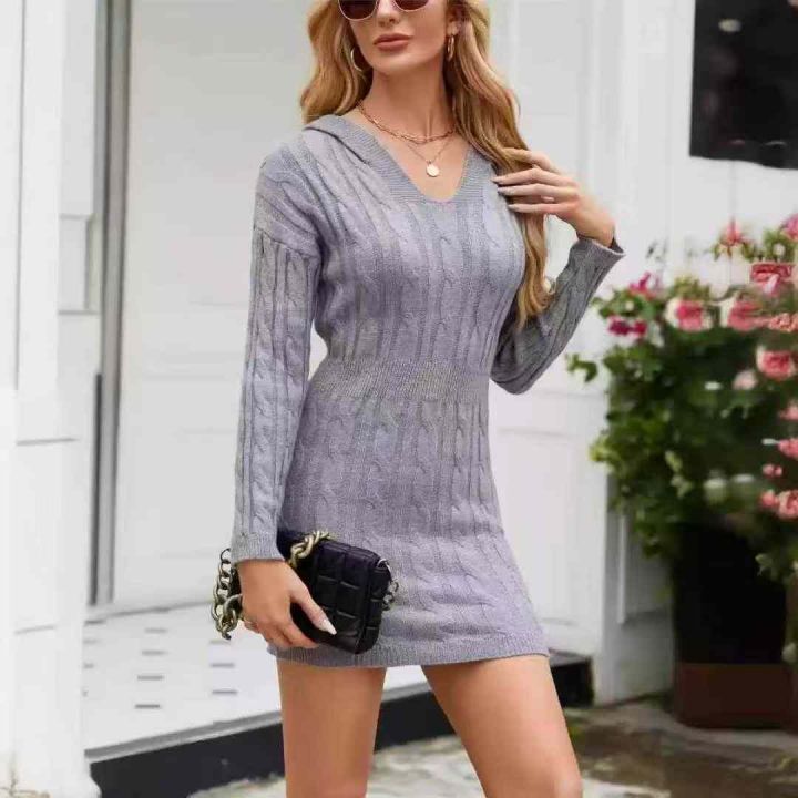 欧美风长袖中长款针织包臀气质通勤单麻花连衣裙,独立包装,85件,清7.8...