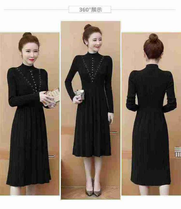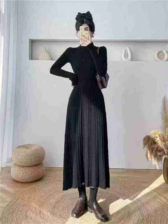 秋冬新款法式复古黑色大长款包芯纱套头毛衣连衣裙,独立包装,均码面料软糯...
