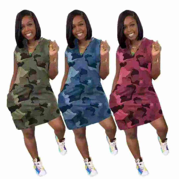 5.5清欧美时尚宽松双口袋V领无袖背心连衣裙,图片款整款多色,数量1100件左...
