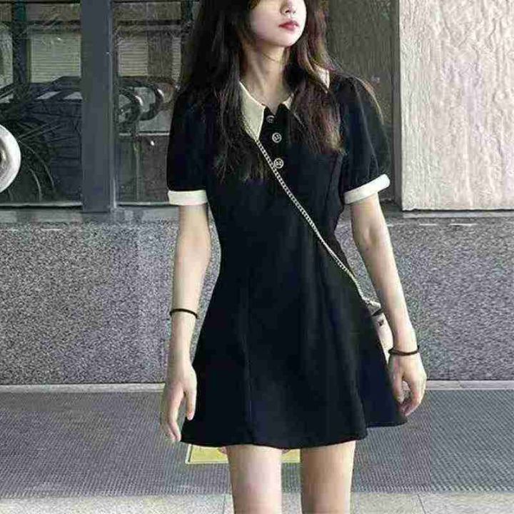 424件,polo气质学院风连衣裙短袖法式夏季新款百搭小个子收腰显瘦小黑裙,...