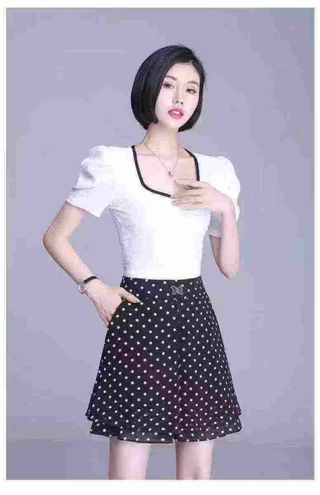 上新全清:3.8一件高腰气质百搭雪纺A字垂感波点裙裤,[爱心]400件左右,码...