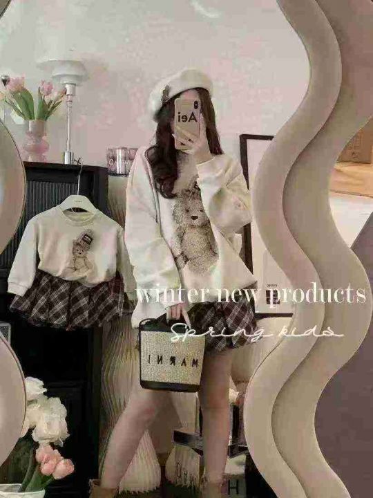 ️55件\'小香风套装亲子装秋冬款婴儿母子母女装百褶裙高端炸街洋气卫衣潮,...