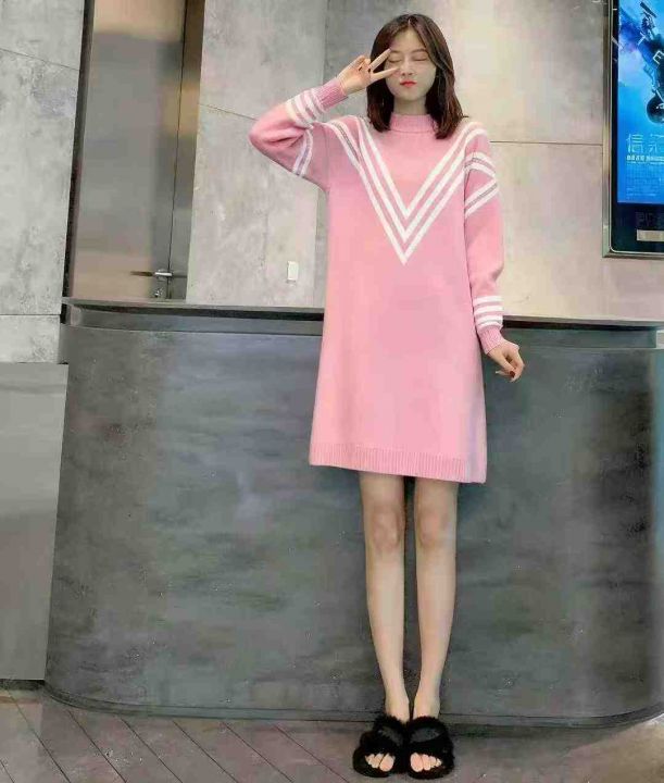 秋冬新款宽松慵懒风加厚中长款包芯纱套头毛衣连衣裙,独立包装,均码面料软...