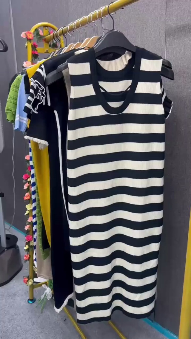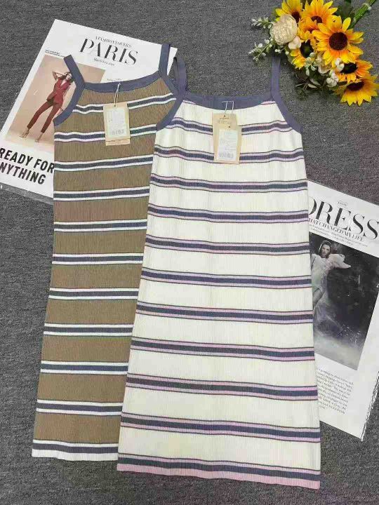 捡漏款,夏季新款品牌原单撞色条纹针织吊带连衣裙,独立包装带吊牌,码数S-...