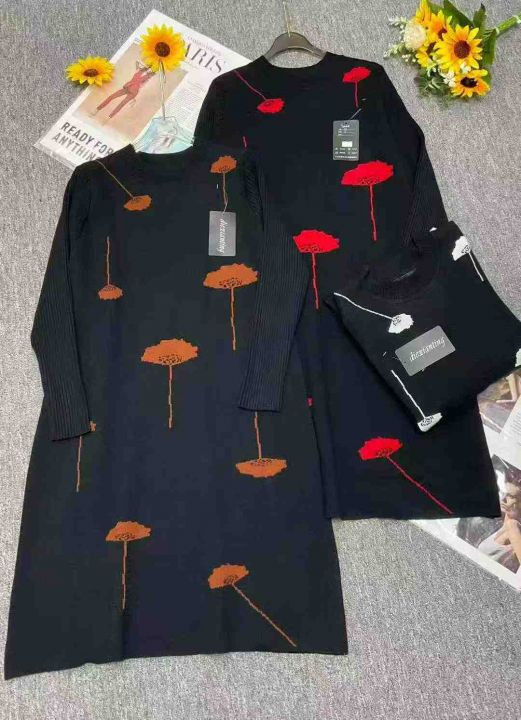 秋冬新款宽松百搭轻熟女装提花包芯纱毛衣连衣裙,独立包装带吊牌,均码面料...