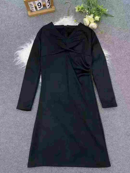 加绒连衣裙71件5.5,女装显瘦v领收腰垂感气质连衣裙,码数1-5(S-2XL)独立...