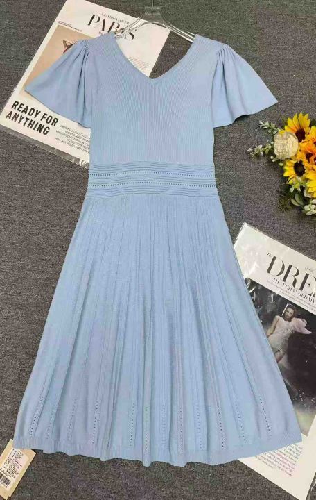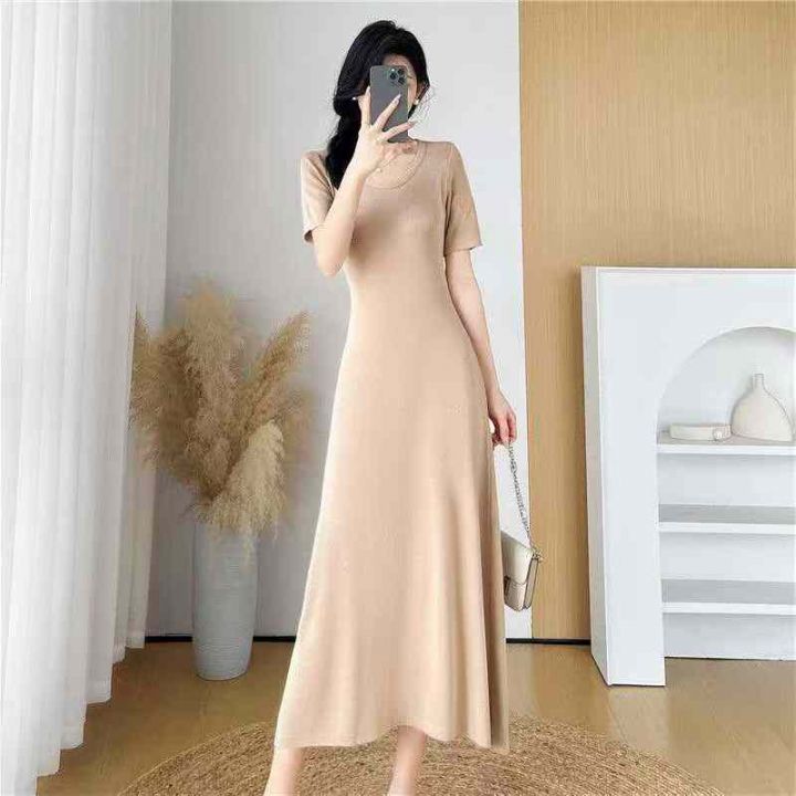 夏季新款品牌原单韩系净版简约宽松百搭冰丝针织连衣裙,独立包装带吊牌,均...