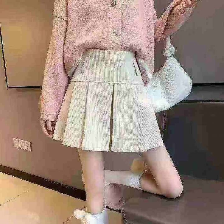 设计感小众a字高腰显瘦短裙复古灯芯绒半身裙秋冬新款百褶裙女装,短裙有内...