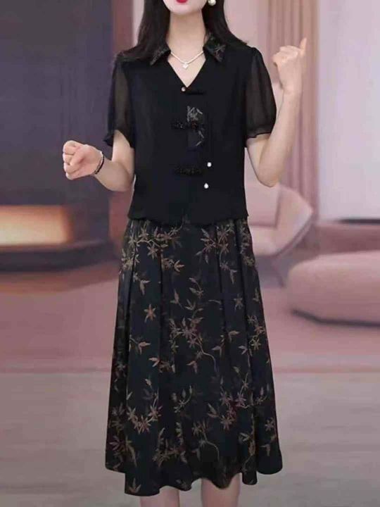 高档复古妈妈假两件连衣裙大码女装遮肉遮胯显瘦裙子,实拍为准,模特供参考...