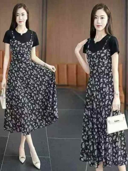 碎花连衣裙女夏季2025新款薄款遮肚显瘦垂坠感假两件裙子,M码110厘米,独立...