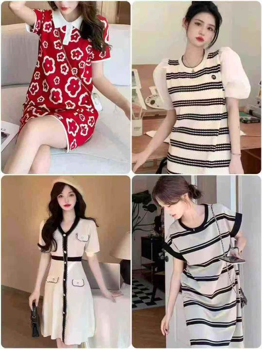 5.9清电商仓回收335条秋季新品设计款千金风条纹针织连衣裙系列,码数S-4XL...