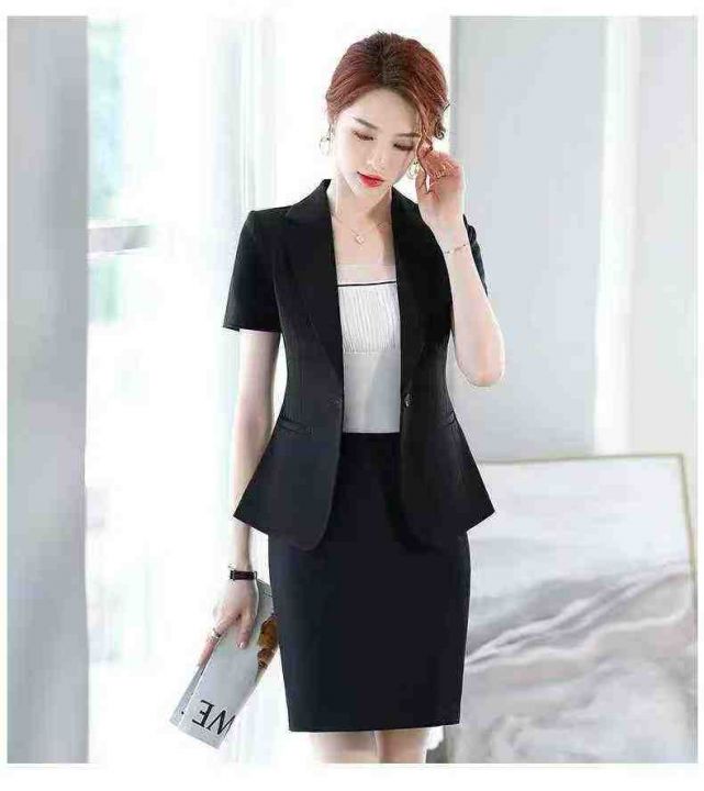 全清价7.9元捡漏41套黑色短袖小西装配裙子显瘦夏季修身百搭职业装套裙,防...