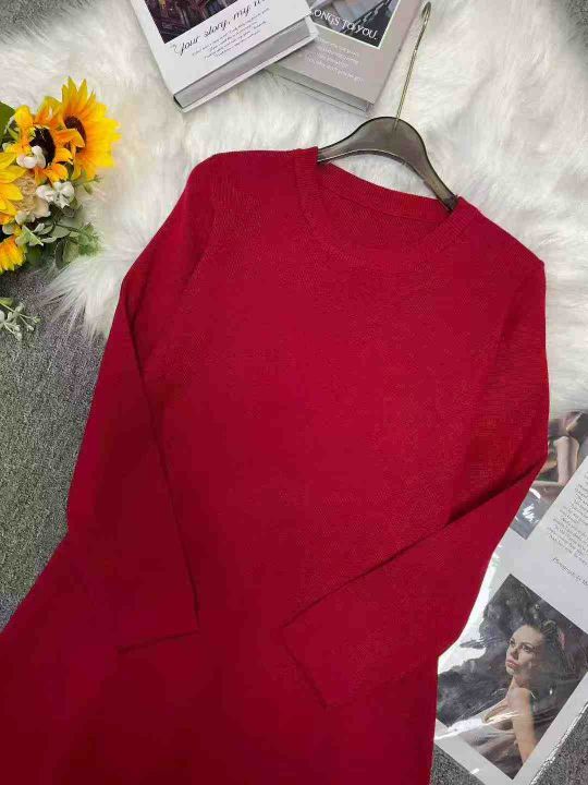 秋冬季时尚洋气红色宽松百搭大长款针织毛衣连衣裙,独立包装,均码面料软糯...