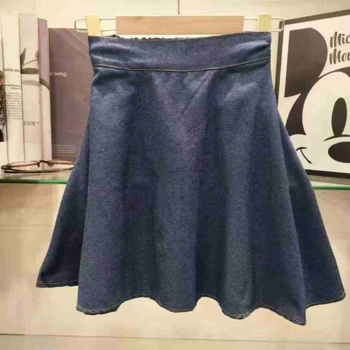 4.8元打包[烟花],新款学院风深蓝色牛仔半身裙女复古高腰显瘦防走光小个子...