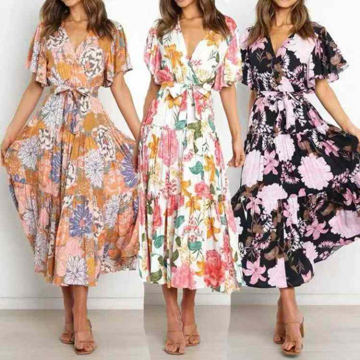 跨境电商下架亚马逊洋气外贸中长款大码连衣裙,独立拉链包装,码数S-5XL.数...