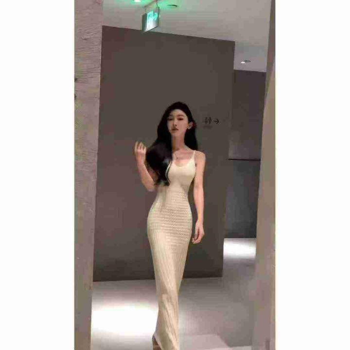 上新全清:10.8一件高级感气质V领收腰镂空吊带针织长裙,[爱心]60件左右,...