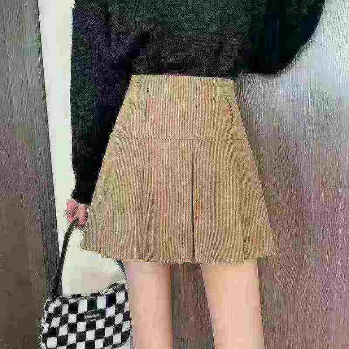 设计感小众a字高腰显瘦短裙复古灯芯绒半身裙秋冬新款百褶裙女装,短裙有内...