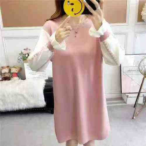 秋冬新款宽松百搭假两件小香风显瘦气质减龄爆款针织包芯纱连衣裙,独立包装...